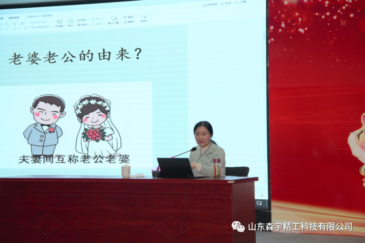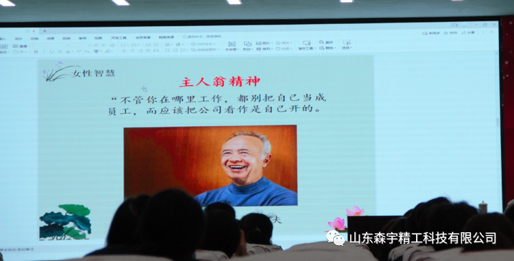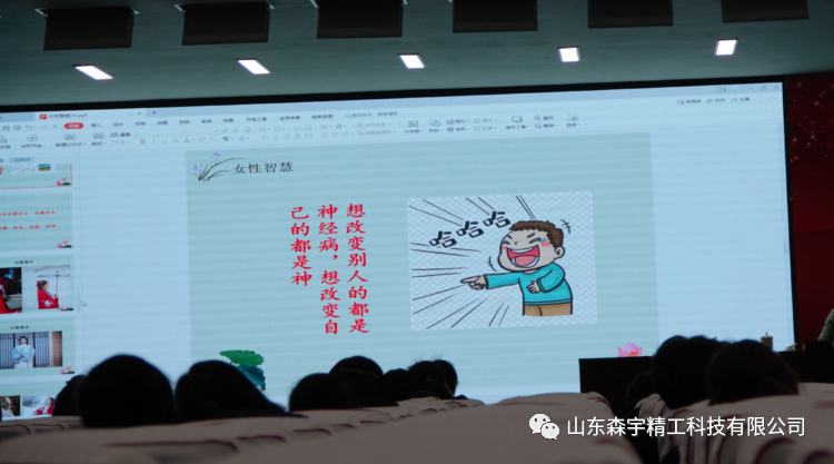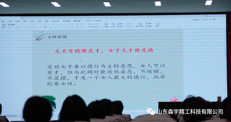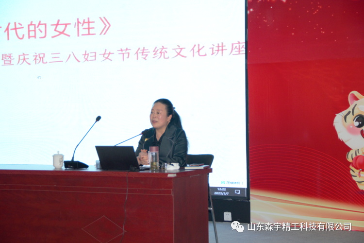 2022年3月7日,山東森宇精工科技有限公司在新辦公樓多動能廳舉辦了《智能時代的女性》傳統(tǒng)文化講座活動。慶祝“三八”國際婦女節(jié),傳承中華文化,弘揚(yáng)傳統(tǒng)美德,營造文明祥和的社會氛圍。